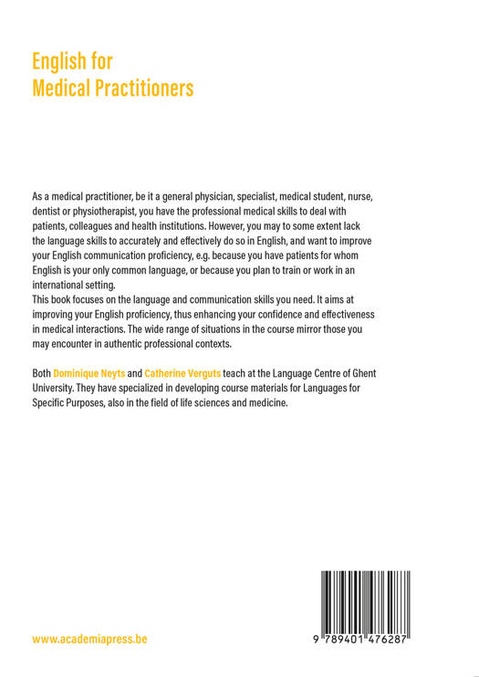 As a medical practitioner, be it a general physician, specialist, medical student, nurse, dentist or physiotherapist, you have the professional medical skills to deal with patients, colleagues and health institutions. However, you may to some extent lack the language skills to accurately and effectively do so in English, and want to improve your English communication proficiency, e.g. because you have patients for whom English is your only common language, or because you plan to train or work in an international setting.