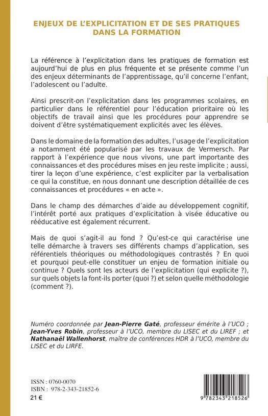 La référence à l’explicitation dans les pratiques de formation est aujourd’hui de plus en plus fréquente et se présente comme l’un des enjeux déterminants de l’apprentissage, qu’il concerne l’enfant, l’adolescent ou l’adulte. Ainsi prescrit-on l’explicitation dans les programmes scolaires, en particulier dans le référentiel pour l’éducation prioritaire où les objectifs de travail ainsi que les procédures pour apprendre se doivent d’être systématiquement explicités avec les élèves.