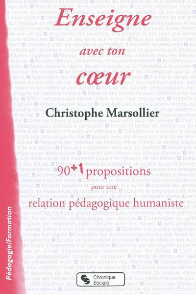 90+1 propositions pour une relation pédagogique humaniste Considère la pédagogie non comme une science mais comme un art, avec ses écoles, ses techniques, ses styles et ses incertitudes. Observe comment tu crées au quotidien, par tes habiletés, tes intentions, tes désirs et tes peurs, ta relation aux élèves. De simples ajustements de ton regard au sein de tes habitudes peuvent suffire à rendre ta communication plus ouverte et ton enseignement plus fécond. Extrait de l'avant-propos