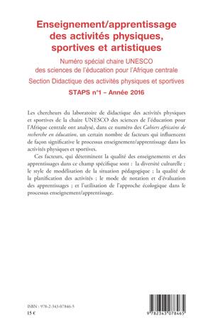 Enseignement / apprentissage des activités physiques, sportives et artistiques - Cahiers africains de recherche en éducation