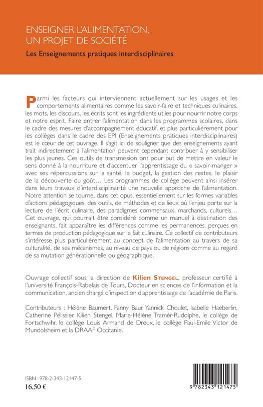 Faire entrer l'alimentation dans les programmes scolaires, et plus particulièrement pour les collèges dans le cadre des EPI (Enseignements pratiques interdisciplinaires) est le coeur de cet ouvrage. Il s'agit ici de souligner que des enseignements ayant trait indirectement à l'alimentation peuvent cependant contribuer à ensibiliser les plus jeunes. L'attention se tourne sur les formes variables d'actions pédagogiques, les outils, les méthodes et les lieux où l'enjeu porte sur la lecture de l'écrit culinaire, des paradigmes commensaux, marchands, culturels... Ce manuel à destination des enseignants fait apparaître les différences comme les permanences perçues en termes de production pédagogique sur le fait culinaire.