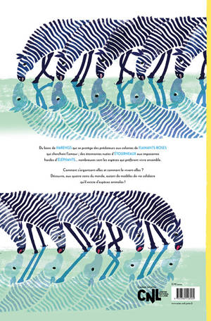 Beaucoup d'animaux vivent en groupe. Qu'est-ce qui les pousse à vivre ensemble ? Comment s'organisent-ils ? De grandes images au tampon montrent les bancs de harengs, les colonies de flamants roses, les troupeaux de gnous ou encore les nuées d'étourneaux et nous révèlent leurs secrets pour se protéger des prédateurs, trouver des partenaires, s'occuper des petits ou encore se tenir chaud. À chacun sa tactique!