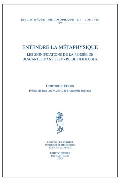 En se mettant passionnement a son ecoute, Heidegger nous a permis d'entendre la metaphysique d'une maniere inouie. Par un juste retour des choses, dans un geste inedit, il s'agira ici de mieux entendre Heidegger en se mettant patiemment a l'ecoute d'un metaphysicien precis: Descartes, ou plutot a l'ecoute de ce qu'il nous en dit. Car loin d'etre anecdotiques, les significations que la pensee de Descartes a - la premiere faisant d'elle une onto-theologie de la causa, la seconde une onto-theologie de la cogitatio - et prend dans l'oeuvre de Heidegger - la premiere etant de la provoquer, la deuxieme de l'aiguiller, la troisieme de l'instruire - revelent fidelement les orientations de celui-ci, en et hors metaphysique. Comme il sied en hermeneutique, il sera donc question de sens, celui que l'on prend n'etant pas moins indifferent a celui que l'on donne que celui que l'on donne n'est innocent de celui que l'on prend. En se mettant passionnement a son ecoute, Heidegger nous a permis d'entendre la metaphysique d'une maniere inouie. Par un juste retour des choses, dans un geste inedit, il s'agira ici de mieux entendre Heidegger en se mettant patiemment a l'ecoute d'un metaphysicien precis: Descartes, ou plutot a l'ecoute de ce qu'il nous en dit. Car loin d'etre anecdotiques, les significations que la pensee de Descartes a - la premiere faisant d'elle une onto-theologie de la causa, la seconde une onto-theologie de la cogitatio - et prend dans l'oeuvre de Heidegger - la premiere etant de la provoquer, la deuxieme de l'aiguiller, la troisieme de l'instruire - revelent fidelement les orientations de celui-ci, en et hors metaphysique. Comme il sied en hermeneutique, il sera donc question de sens, celui que l'on prend n'etant pas moins indifferent a celui que l'on donne que celui que l'on donne n'est innocent de celui que l'on prend.