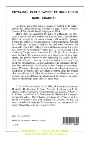 Les textes présentés dans cet ouvrage parlent de la partici­pation, de l'entraide et des solidarités dans 7 pays : France, Canada, RFA, Brésil, Israël, Espagne et USA.
