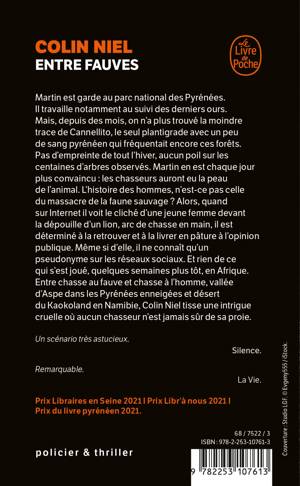Martin est garde au parc national des Pyrénées. Il travaille notamment au suivi des derniers ours. Mais depuis des mois, on n’a plus trouvé la moindre trace de Cannellito, le seul plantigrade avec un peu de sang pyrénéen qui fréquentait encore ces forêts. Pas d’empreinte de tout l’hiver, aucun poil sur les centaines d’arbres observés. Martin en est chaque jour plus convaincu : les chasseurs auront eu la peau de l’animal. L’histoire des hommes, n’est-ce pas celle du massacre de la faune sauvage ? Alors, quand sur Internet il voit le cliché d’une jeune femme devant la dépouille d’un lion, arc de chasse en main, il est déterminé à la retrouver et à la livrer en pâture à l’opinion publique. Même si d’elle, il ne connaît qu’un pseudonyme sur les réseaux sociaux. Et rien de ce qui s’est joué, quelques semaines plus tôt, en Afrique.
