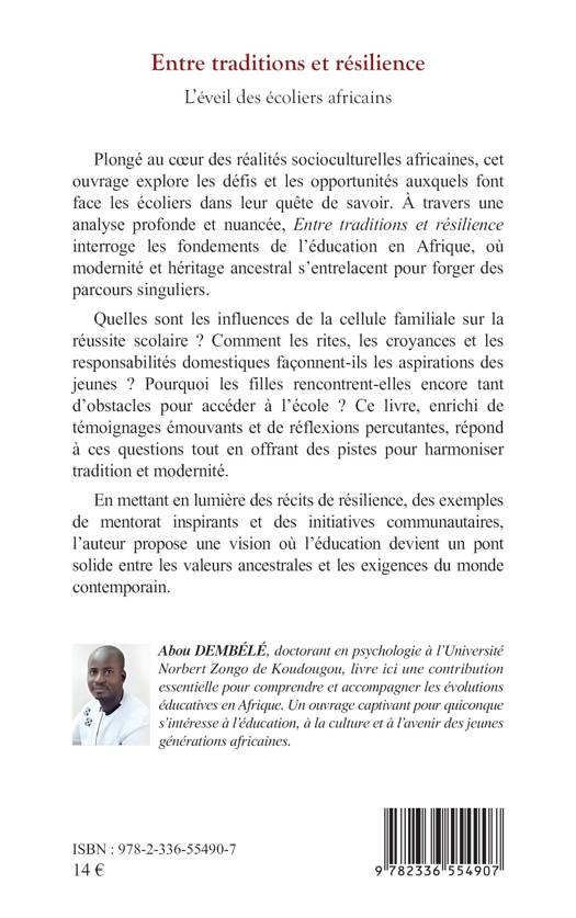 Plongé au coeur des réalités socioculturelles africaines, cet ouvrage explore les défis et les opportunités auxquels font face les écoliers dans leur quête de savoir. À travers une analyse profonde et nuancée, Entre Traditions et Résilience interroge les fondements de l'éducation en Afrique, où modernité et héritage ancestral s'entrelacent pour forger des parcours singuliers. Quelles sont les influences de la cellule familiale sur la réussite scolaire ? Comment les rites, les croyances et les responsabilités domestiques façonnent-ils les aspirations des jeunes ? Pourquoi les filles rencontrent-elles encore tant d'obstacles pour accéder à l'école ? Ce livre, enrichi de témoignages émouvants et de réflexions percutantes, répond à ces questions tout en offrant des pistes pour harmoniser tradition et modernité. En mettant en lumière des récits de résilience, des exemples de mentorat inspirants et des initiatives communautaires, l'auteur propose une vision où l'éducation devient un pont solide entre les valeurs ancestrales et les exigences du monde contemporain.