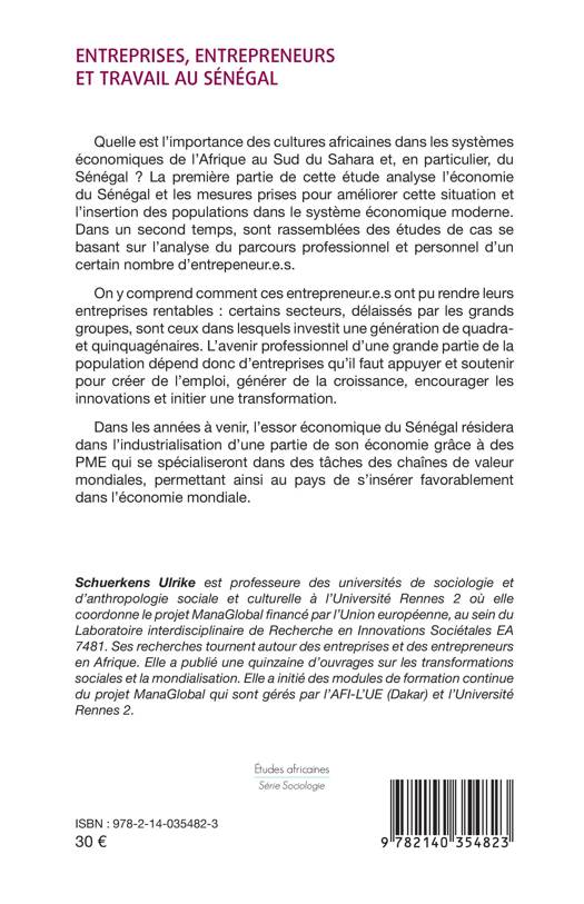 Quelle est l'importance des cultures africaines dans les systèmes économiques de l'Afrique au Sud du Sahara et, en particulier, du Sénégal ? La première partie de cette étude analyse l'économie du Sénégal et les mesures prises pour améliorer cette situation et l'insertion des populations dans le système économique moderne. Dans un second temps, sont rassemblées des études de cas se basant sur l'analyse du parcours professionnel et personnel d'un certain nombre d'entrepreneurs. On y comprend comment ces entrepreneurs ont pu rendre leurs entreprises rentables: certains secteurs, délaissés par les grands groupes, sont ceux dans lesquels investit une génération de quadra et quinquagénaires. L'avenir professionnel d'une grande partie de la population dépend donc d'entreprises qu'il faut appuyer et soutenir pour créer de l'emploi, générer de la croissance, encourager les innovations et initier une transformation.