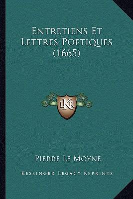 Entretiens Et Lettres Po�����tiques (1665) est un livre �����crit par Pierre Le Moyne. Cet ouvrage est une collection de lettres et d'entretiens po�����tiques qui ont �����t����� �����crits par l'auteur au cours de sa vie. Le livre est divis����� en deux parties: la premi�����re partie contient des lettres po�����tiques qui ont �����t����� �����crites ������ des amis et ������ des membres de la famille de l'auteur, tandis que la deuxi�����me partie contient des entretiens po�����tiques avec des personnages imaginaires.Les lettres po�����tiques sont des po�����mes qui ont �����t����� �����crits dans un style �����pistolaire. Ils sont adress�����s ������ des personnes sp�����cifiques et contiennent souvent des messages personnels et intimes. Les entretiens po�����tiques, quant ������ eux, sont des dialogues imaginaires entre l'auteur et des personnages fictifs. Ces dialogues sont souvent philosophiques et portent sur des th�����mes tels que l'amour, la mort, la nature et la religion.Dans l'ensemble, Entretiens Et Lettres Po�����tiques est un livre qui offre un aper�����u unique de la vie et de la pens�����e de l'auteur. Les po�����mes et les dialogues sont �����crits dans un style �����l�����gant et sophistiqu�����, ce qui en fait une lecture agr�����able pour les amateurs de po�����sie et de litt�����rature classique.This Book Is In French.This scarce antiquarian book is a facsimile reprint of the old original and may contain some imperfections such as library marks and notations. Because we believe this work is culturally important, we have made it available as part of our commitment for protecting, preserving, and promoting the world's literature in affordable, high quality, modern editions, that are true to their original work.