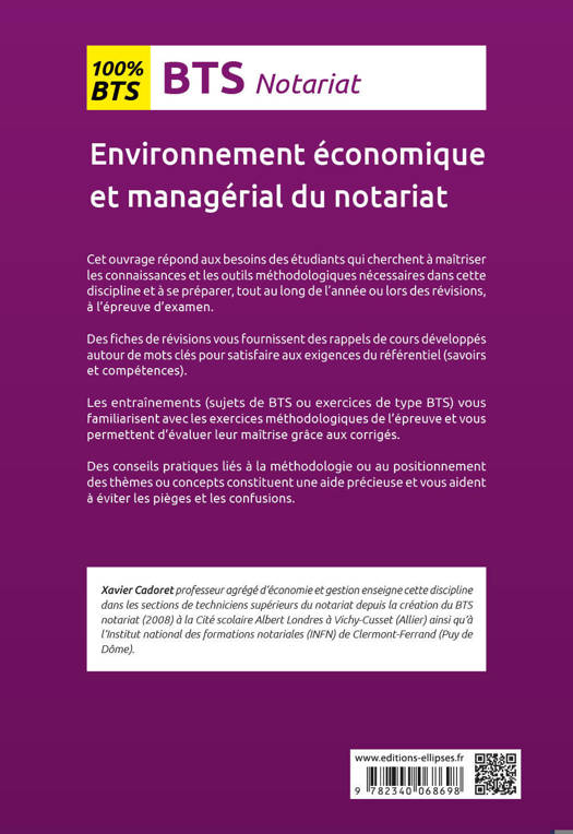 Cet ouvrage s’adresse à tous les élèves du BTS Notariat préparant l’épreuve Environnement économique et managérial du notariat (épreuve E3).