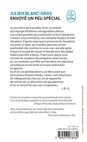 Je vous écris de la planète Terre, un endroit qui regorge d’histoires inimaginables ailleurs. Les cartes postales qui composent ce livre zigzaguent à travers cinq continents, une trentaine de pays et mille situations. Figurez-vous que la princesse du Swaziland m’a posé un lapin, qu’un prêtre japonais m’a fait psalmodier des mantras nu sous une cascade gelée et que j’ai essayé de sauver le monde avec des global leaders perchés à Davos. Il faut aussi que je vous raconte les vendeurs de pangolins camerounais, les survivalistes assoiffés en Indonésie, les alpinistes alcooliques en Iran et les écrivains américains en pyjama.