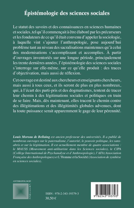 Le statut des savoirs et des connaissances en sciences humaines et sociales, tel qu'il commençait à être élaboré par les précurseurs et les fondateurs de ce qu'il était convenu d'appeler la sociologie, à laquelle vint s'ajouter l'anthropologie, pose aujourd'hui problème tant au niveau des sacralisations maintenues qu'à celui des modernisations s'accomplissant et accomplies. A partir d'ouvrages inventoriés sur une longue période, principalement les trente dernières années, l'épistémologie des sciences sociales s'interroge sur elle-même, sur ce qu'elle produit : des traces d'objectivation, mais aussi de réflexion.