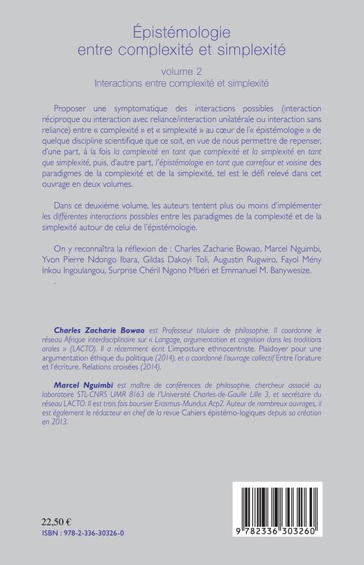 Proposer une symptomatique des interactions possibles entre "complexité" et "simplexité" au coeur de l'"épistémologie" de quelque discipline scientifique que ce soit, tel est le défi relevé dans cet ouvrage en deux volumes. Dans ce second volume, les auteurs tentent d'implémenter les différentes interactions possibles entre les paradigmes de la complexité et de la simplexité autour de celui de l'épistémologie.