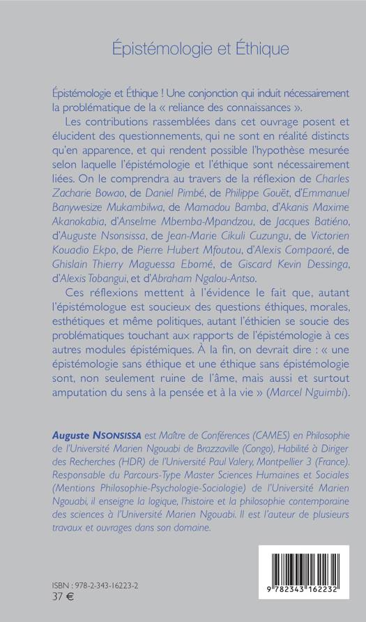 Épistémologie et Éthique ! Une conjonction qui induit nécessairement la problématique de la « reliance des connaissances ». Ces contributions posent et élucident des questionnements, qui ne sont en réalité distincts qu'en apparence, et qui rendent possible l'hypothèse selon laquelle l'épistémologie et l'éthique sont nécessairement liées. Elles mettent à l'évidence le fait que, autant l'épistémologue est soucieux des questions éthiques, morales, esthétiques et même politiques, autant l'éthicien se soucie des problématiques touchant aux rapports de l'épistémologie à ces autres modules épistémiques.