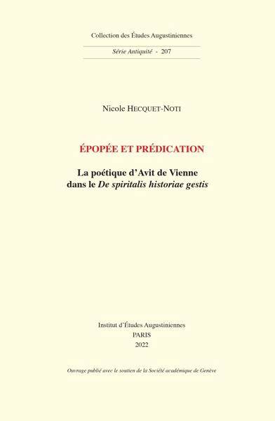 Avit de Vienne est l'auteur des cinq chants de l'Histoire spirituelle, qui célèbre l'importance du Christ dans la catéchèse baptismale, par la glorification des patriarches Adam, Noé et Moïse. Évêque catholique appartenant à l'aristocratie gallo-romaine, Avit est un lettré d'une grande culture latine. La présente étude examine son écriture poétique au moyen d'une approche narratologique croisée avec les méthodes de la philologie traditionnelle. Il en ressort l'importance des deux voix auctoriales construisant le poème : la voix de l'évêque, formé par la pratique de la liturgie de la Parole, et celle du poète, pétri de rhétorique et rendant hommage à la poétique classique. Ce mélange des voix auctoriales produit un poème accessible à un large public, contemporain mais aussi postérieur au VIe s. - le poème connaîtra une grande diffusion au Moyen Âge. L'analyse proposée permet de saisir la construction du récit poétique, de montrer l'adaptation des codes épiques à la transmission de la foi chrétienne et de souligner la dette d'Avit envers les poètes épiques latins. Enfin, l'étude stylistique et métrique prouve la parfaite maîtrise de l'hexamètre de la part du poète chrétien.