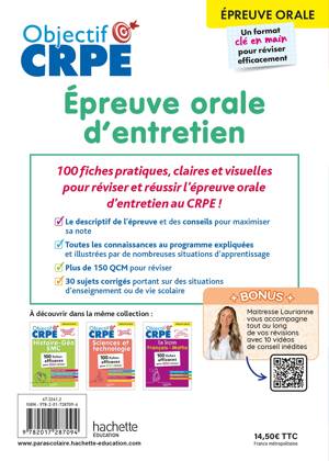 100 fiches pratiques, claires et visuelles pour réviser et réussir l’épreuve orale d’entretien au CRPE M2/L3Le descriptif de l’épreuve et des conseils pour maximiser sa note