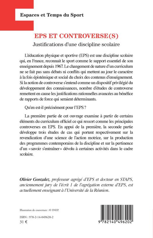 L'éducation physique et sportive (EPS) est une discipline scolaire qui, en France, reconnait le sport comme le support essentiel de son enseignement depuis 1967. Le changement de nature d'un curriculum ne se fait pas sans débats ni conflits qui mettent au jour le caractère à la fois épistémique et social du choix des contenus d'enseignement. Si la notion de controverse s'entend comme un dispositif privilégié du développement des connaissances, nombre d'études de controverse remettent en cause les justifications rationnelles avancées au bénéfice de rapports de force qui seraient déterminants. Qu'en est-il précisément pour l'EPS ? La première partie de cet ouvrage examine à partir de certains éléments du curriculum officiel ce qui ressort comme les principales controverses en EPS. En appui de la première, la seconde partie développe trois études de cas qui portent respectivement sur la revendication d'une science de l'action motrice, sur la production des programmes contemporains de la discipline et sur la pertinence d'un « savoir s'entraîner » dévolu à certaines activités dans le cadre scolaire.