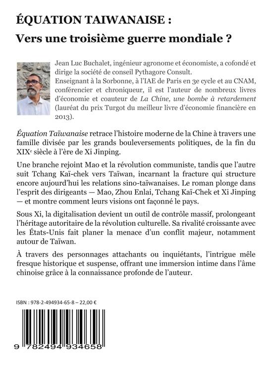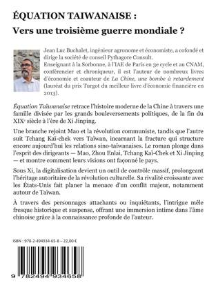Equation Taïwanaise retrace l'histoire moderne de la Chine à travers une famille divisée par les grands bouleversements politiques, de la fin du XIXème siècle à l'ère de Xi JinPing. Une branche rejoint Mao et la révolution communiste, tandis que l'autre suit Tchang Kaï-Chek vers Taiwan, incarnant la fracture qui structure encore aujourd'hui les relations sino-taïwanaises. Le roman plonge le lecteur dans l'esprit des dirigeants - Mao, Zhou Enlai, Tchang Kaï-Chek et Xi JinPing - et montre notamment comment leurs visions ont façonné le pays. Sous XI, la digitalisation devient un outil de contrôle massif, prolongeant l'héritage autoritaire de la révolution culturelle. Sa rivalité croissante avec les Etats-Unis fait planer la menace d'un conflit majeur, notamment autour de Taïwan. A travers des personnages attachants ou inquiétants, l'intrigue mêle fresque historique et suspense, offrant une immersion intime dans l'âme chinoise grâce à la connaissance profonde de l'auteur.