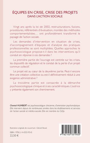 Vingt ans après la loi de 2002, restructurations, fusions, procédures, référentiels d'évaluation, montée des méthodes comportementalistes ont profondément transformé le paysage de l'action sociale. Les demandes d'intervention en situation de crises, d'accompagnement d'équipes et d'analyse des pratiques professionnelles se sont multipliées. Quelles approches le psychosociologue propose-t-il dans les interventions qu'il conduit en réponse à ces demandes ? La première partie de l'ouvrage est centrée sur les crises, les dispositifs de régulation et le constat de la perte d'un projet commun collectif. Le projet est au cur de la deuxième partie. Peut-il encore être une création collective ou est-il définitivement réduit à une exigence administrative ? La troisième partie est consacrée à la démarche psychosociologique clinique et à ses caractéristiques. L'autrice y présente également son cheminement.