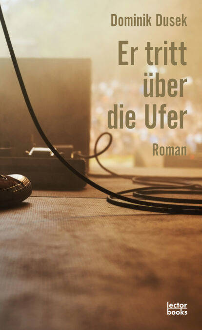 Eingebettet in die Welt der Musik und Popkultur handelt "Er tritt über die Ufer" von verschwenderischen kreativen Prozessen, Erfolg, Liebe, von Sinn und Irrsinn unserer modernen Gesellschaft. Mit klarer Sprache und großem Schöpfergeist erzählt Dominik Dusek mal provokativ, mal humorvoll eine Geschichte zweier Männer, die voller Überlagerungen steckt und spiralförmig auf ein konfrontatives Ende zusteuert.