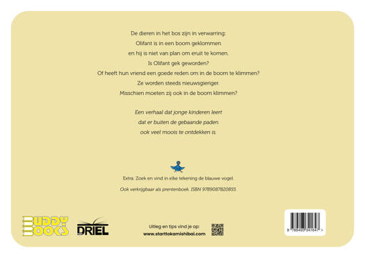 De dieren in het bos zijn in verwarring: Olifant is in een boom geklommen en hij is niet van plan om eruit te komen. Is Olifant gek geworden? Of heeft hun vriend een goede reden om in de boom te klimmen? Ze worden steeds nieuwsgieriger. Misschien moeten zij ook in de boom klimmen?