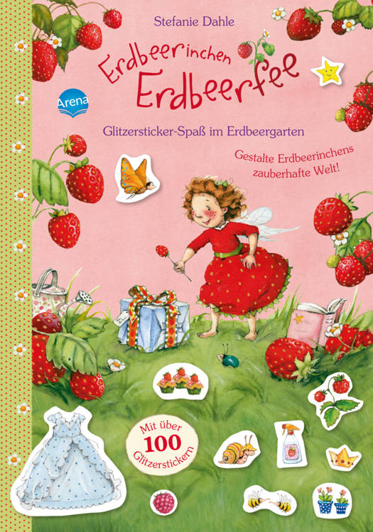 Im Erdbeergarten ist immer etwas los! Die kleine Erdbeerfee räumt ihr Häuschen auf. Sie backt leckere Muffins und probiert hübsche Kleider an. Die vielen zauberhaften Szenen können mit den über 100 Glitzerstickern nach Lust und Laune gestaltet werden.