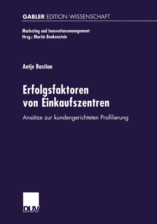 Einkaufszentren prägen in den letzten Jahren, vor allem in den neuen Bundesländern, die Handelslandschaft in Deutschland. Erste Übersättigungstendenzen mit Einkaufszentrenverkaufsflächen führen zu einem Verdrängungswettbewerb, in dem nur Einkaufszentren fortbestehen können, die die wesentlichen Erfolgsfaktoren kennen und konsequent nutzen. Antje Bastian entwickelt auf der Grundlage von Untersuchungen zur Erfolgsfaktorenforschung im Einzelhandel und von Forschungsansätzen zum Einkaufszentrenwahlverhalten ein Erfolgsfaktorenmodell für Einkaufszentren aus Konsumentensicht. Das Modell wird von der Autorin empirisch validiert und liefert für die Praxis Erkenntnisse zur Fundierung unternehmens- und marketingspezifischer Entscheidungen bei der Planung und dem Management von Einkaufszentren.