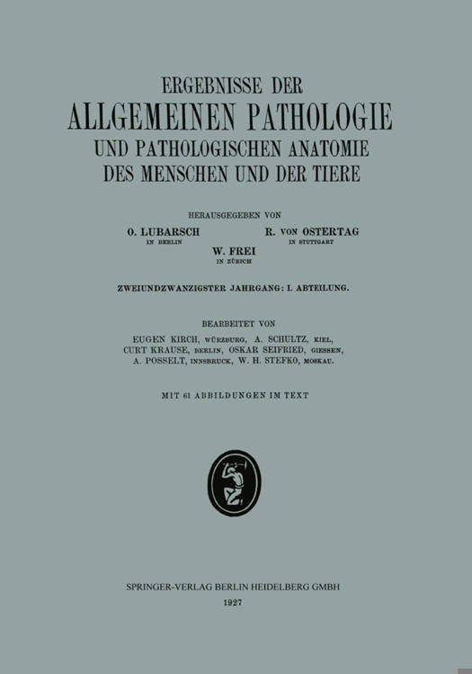 Ergebnisse Der Allgemeinen Pathologie Und Pathologischen Anatomie Des Menschen Und Der Tiere