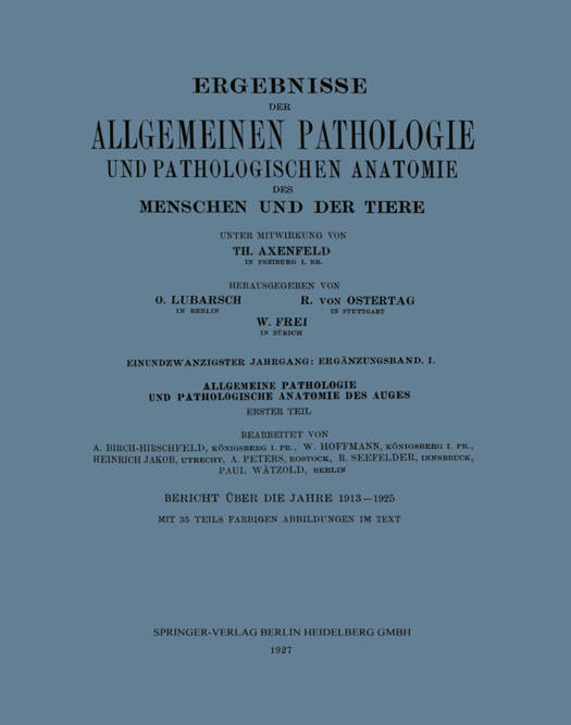 Th Axenfeld, Arthur Birch-Hirschfeld, W Hoffmann, Heinrich Jakob, A Peters, R Seefelder, Paul Wätzold