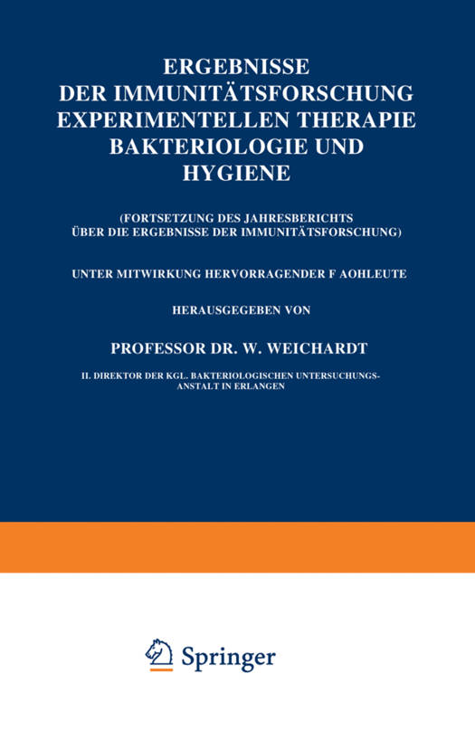 Ergebnisse Der Immunitätsforschung Experimentellen Therapie Bakteriologie Und Hygiene