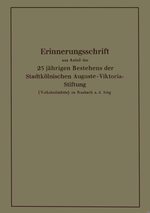 Erinnerungsschrift Aus Anlaß Des 25 Jährigen Bestehens Der Stadtkölnischen Auguste-Viktoria-Stiftung