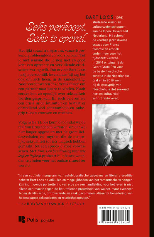 Volgens Bart Loos komt dat omdat we de taal van Eros hebben verloren, omdat we niet langer opgroeien met de grote liefdesverhalen en mythen die de menselijke seksualiteit tot iets magisch hebben gemaakt, tot een sprookje voor volwassenen. Met Eros. Een handleiding voor wie leeft en liefheeft probeert hij nieuwe woorden te vinden voor het oudste ritueel ter wereld.
