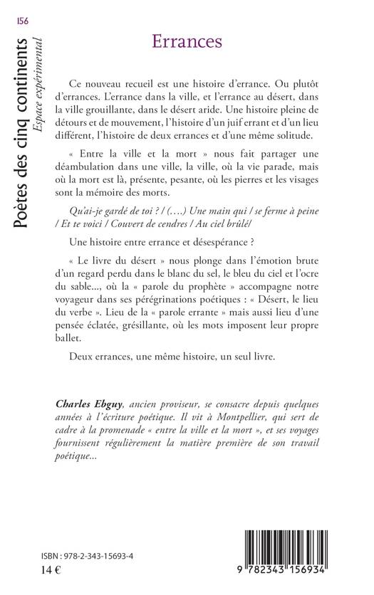 Ce nouveau recueil est une histoire d'errance. Ou plutôt d'errances. L'errance dans la ville, et l'errance au désert, dans la ville grouillante, dans le désert aride. Une histoire pleine de détours et de mouvement, l'histoire d'un juif errant et d'un lieu différent, l'histoire de deux errances et d'une même solitude. « Entre la ville et la mort » nous fait partager une déambulation dans une ville, la ville, où la vie parade, mais où la mort est là, présente, pesante, où les pierres et les visages sont la mémoire des morts.