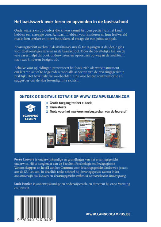 Ervaringsgericht werken in de basisschool met 6- tot 12-jarigen is de ideale gids voor (toekomstige) leraren in de basisschool. Door de bevattelijke taal en de vele cases helpt dit boek onderwijzers en opvoeders op weg in de zoektocht naar wat kinderen bezighoudt.