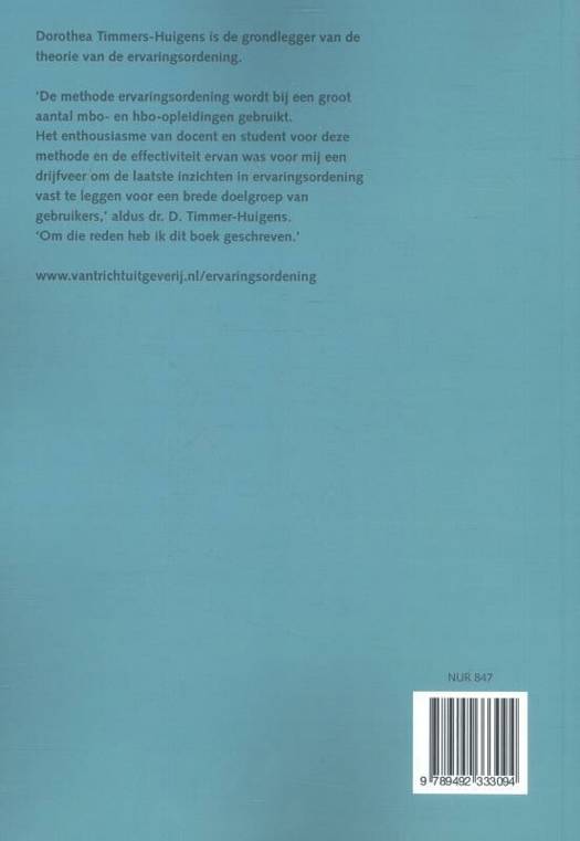 Daarnaast wordt ervaringsordening bij een aantal MBO- en HBO-opleidingen gebruikt. Het enthousiasme van de deelnemers c.q. studenten en de effectiviteit van de methode was voor de auteur een drijfveer om de laatste inzichten in ervaringsordening vast te leggen voor een brede doelgroep