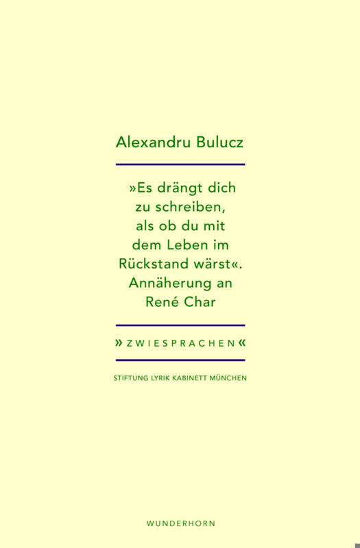Ein Leser schrieb mir einmal, er nehme eine gewisse Hast in meinen Gedichten wahr. Das gefiel mir. Ich dachte dabei an den von mir häufig eingesetzten Versfuß des Daktylus, den Neigungswinkel und das Gefälle zwischen der betonten Silbe und den beiden unbetonten Folgesilben, an ein Fahrrad ohne Bremse, das einen Hang hinunterfährt und schneller und schneller wird. Und dann auch an eine näher rückende Zukunft und an eine im Rücken drängelnde Vergangenheit - an eine Gegenwart also, die nicht mehr viel Spiel hat. »Es drängt dich zu schreiben / Als ob du mit dem Leben im Rückstand wärst / Wenn es so ist dann geh deinen Quellen nach / Eile dich / Eile dich weiterzugeben / Was dein ist an Wunder Wohltun und Rebellion«, schrieb René Char in einer ähnlich als begrenzt empfundenen Gegenwart. Ich kehre von diesen Zeilen aus in die Zeit meines Frankfurter Studiums zurück, als ich den Résistance-Kämpfer, und er mich, zum ersten Mal las. Und ich frage mich, nicht nur mit den hypnotischen Aufzeichnungen aus dem Maquis, was eine widerständige Dichtung ausmacht, in der die politische und sonstige Mitteilung die poetische Ausdruckskraft keineswegs dominiert und Verstehen und Nicht-Verstehen zu obsoleten Lektürekategorien werden. (Alexandru Bulucz)Die Zwiesprache wird am 25. Februar 2025 im Lyrikkabinett München gehalten.