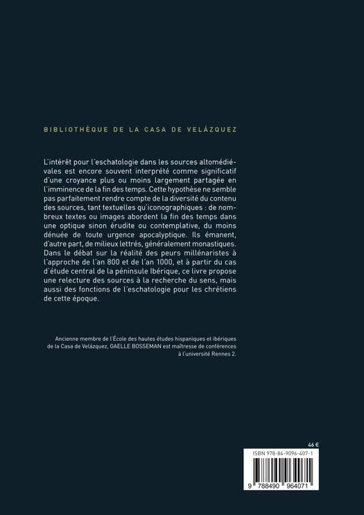 L'eschatologie et les discours sur la fin des temps constituent un sujet important de la médiévistique. Dans la péninsule Ibérique, l'étude de Beatus de Liébana a donné lieu à des débats sur l'existence de peurs apocalyptiques liées à l'approche de l'an 800 ou de l'an 1000 ou encore à la suite de la conquête musulmane. Ce livre vise à mieux intégrer la situation ibérique dans un panorama plus large, et à mettre en évidence le caractère savant et la diversité d'une production textuelle et iconographique aux fonctions multiples, qui aborde la fin des temps dans une optique dénuée de toute urgence apocalyptique.