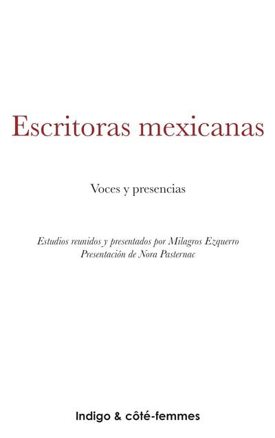 Regroupe des critiques littéraires donnant une vision de la richesse de la littérature narrative féminine mexicaine du XXe siècle. Parmi les auteures étudiées : Josefina Vicens, Elena Garro, Rosario Castellanos, Ines Arredondo, Amparo Davila, Margo Glantz, Julieta Campos, Angelina Muniz-Huberman, Esther Seligson, Silvia Molina, Rosa Beltran, Cristina Rivera-Garza, etc.