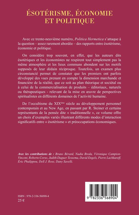Avec ce trente-neuvième numéro, Politica Hermetica s'attaque à la question - assez rarement abordée - des rapports entre ésotérisme, économie et politique. On considère trop souvent, en effet, que les auteurs dits ésotériques et les économistes ne respirent tout simplement pas la même atmosphère et les lieux communs abondent sur les motifs supposés de leur dédain réciproque. Toutefois, un examen plus circonstancié permet de constater que les premiers ont parfois développé des vues prenant en compte la dimension marchande et financière de la réalité, que ce soit au plan théorique et sociétal ou à celui de la commercialisation de produits - éditoriaux, naturels ou thérapeutiques - relevant de la mise en oeuvre de perspectives spiritualistes en différents domaines de l'activité humaine. De l'occultisme du XIXème siècle au développement personnel contemporain et au New Age, en passant par R. Steiner et certains représentants de la pensée dite traditionnelle, ce volume offre un choix d'exemples variés illustrant différents modes d'interaction significatifs entre ésotérisme et préoccupations économiques.