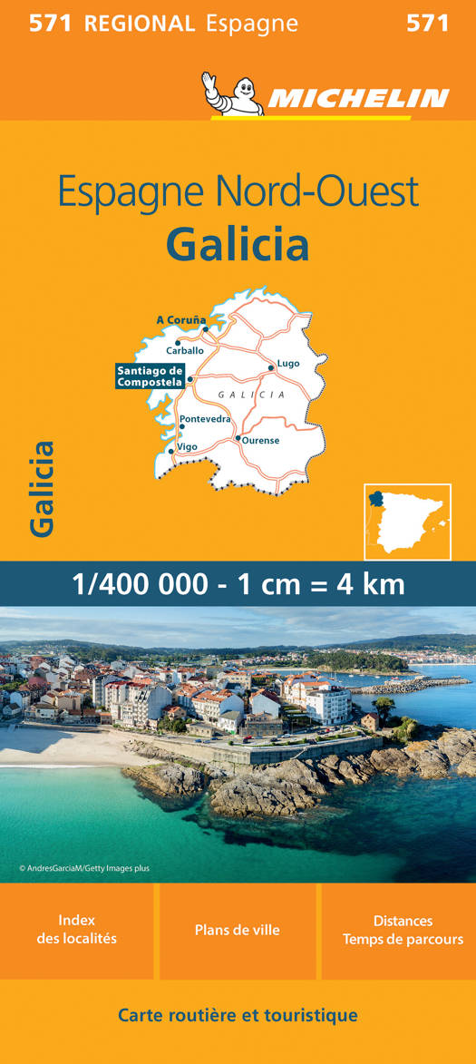 De Michelin REGIONAL kaart España Noroeste, Galicia maakt het u mogelijk om alle wegeninformatie en nuttige toeristische informatie over deze regio te kennen om zo uw reis te optimaliseren: een index van de deelgemeenten, de tabel van de afstanden en reistijden. De schaal 1/400 000 laat u toe de hoofd- en kleine wegen gemakkelijk te visualiseren. Om u beter rondom de steden te begeven, vindt u stadsplattegronden van de belangrijkste steden.