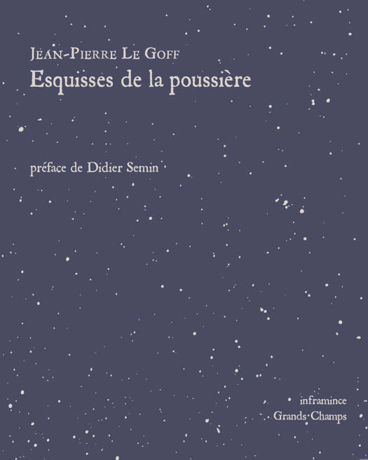 "Il est dit que Cuvier pouvait se représenter un squelette à partir d’un os, je conjecture une personne qui par une poussière restituera la chose dont elle est issue". Jean-Pierre Le Goff pourrait bien être cet anatomiste, parti de la poussière pour explorer les méandres de l’esprit, de l’existence et du temps. Sa plus grande préoccupation aura été de saisir l’infinitésimal et de tisser sa toile poétique, à tous ses sens aiguisés. Infiniment grand et infiniment petit – myriades de grains de poussière et multitudes d’étoiles –, deux cosmos entre lesquels, nous dit Jean-Pierre Le Goff, l’homme a sa place assignée.