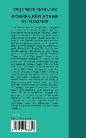 Construit sur le principe aphoristique, ce livre connut en son temps un succès remarquable autant pour son sens historique, faisant écho aux événements politiques de son temps, que pour l'acuité avec laquelle Daniel Stern parvient à saisir l'esprit de son temps. Une oeuvre marquée de l'empreinte du siècle qui l'a vue naître, cause de son succès comme de la lente disparition de la mémoire collective au cours du vingtième siècle. Un témoignage rare rendu aujourd'hui, par cette réédition, à sa juste valeur historique.