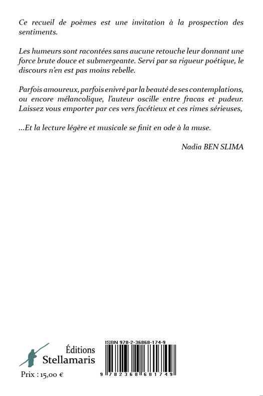 Parfois amoureux, parfois enivré par la beauté de ses contemplations, ou encore mélancolique, l’auteur oscille entre fracas et pudeur. Laissez vous emporter par ces vers facétieux et ces rimes sérieuses,