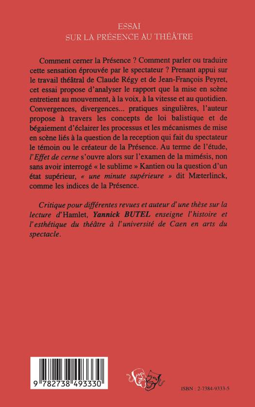 Comment cerner la Présence ? Comment parler ou traduire cette sensation éprouvée par le spectateur ? Prenant appui sur le travail théâtral de Claude Régy et Jean-François Peyret, cet essai propose d'analyser le rapport que la mise en scène entretient au mouvement, à la voix, à la vitesse et au quotidien.