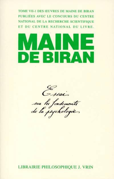 L'Essai sur les fondements de la psychologie occupe une place singuliere dans l'oeuvre de Maine de Biran. D'une part, l'ouvrage marque le point d'aboutissement de la periode ouverte en 1804 par le Memoire de la decomposition de la pensee; en ce sens, il donne sa forme achevee a la philosophie de l'existence subjective que les memoires couronnes par les differentes academies ont jalonnee. D'autre part, il marque le moment ou Maine de Biran, en partie sous la pression d'Ampere, s'efforce de faire droit a la necessite d'une ontologie; c'est le debut d'une crise qui va aboutir en 1813 a la redaction des Rapports des sciences naturelles avec la psychologie, qui inaugurent la philosophie biranienne de l'absolu. A la charniere des deux epoques, l'Essai recapitule et innove, synthetise et fraye de nouvelles voies. Depuis sa premiere publication par Naville au XIXe siecle, il est considere comme le chef d'oeuvre de Maine de Biran.