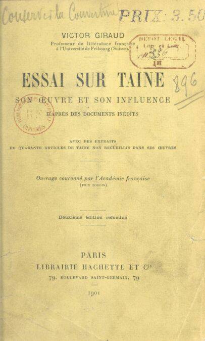 Essai sur Taine, son œuvre et son influence E-BOOK