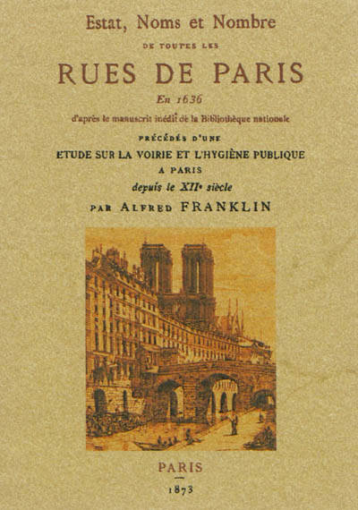 Ce livre présente l¿Estat, Noms, et Nombre de toutes les rues de Paris en 1636, d¿après le manuscrit inédit de la Bibliothèque Nationale, précédés d¿une éude sur la voirie et l¿hygiène publique a Paris depuis le XIIeme siècle.
