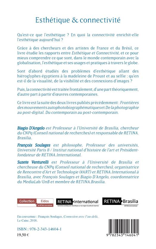 En quoi la connectivité enrichit-elle l'esthétique aujourd'hui ? Grâce à des chercheurs et des artistes de France et du Brésil, ce livre étudie les rapports entre Esthétique et Connectivité, et ce pour mieux comprendre ce que sont, dans le monde contemporain avec la globalisation, l'esthétique et ses usages et pratiques à travers le globe. Ce livre fait suite à « Frontières des mouvements autophotobiographématiques » et « De la photographie au post-digital. Du contemporain au post-contemporain ».