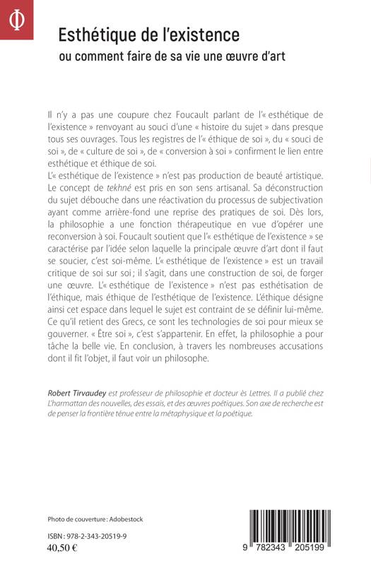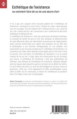 Avec l'« esthétique de l'existence », il n'y a pas de coupure chez Foucault, ses oeuvres renvoyant à une « histoire du sujet ». Tous les registres du rapport à soi confirment le lien entre esthétique et éthique. L'« esthétique de l'existence » n'est pas la production d'une beauté artistique, mais une tekhné au sens artisanal. La déconstruction du sujet traditionnel mène à sa réinvention sur un plan pratique. Dès lors, la philosophie devient thérapeutique et vise une reconversion. Pour Foucault, l'oeuvre dont il faut se soucier, c'est soi-même. Par un travail critique sur soi, il s'agit de se construire, de forger une oeuvre. L'« esthétique de l'existence » est donc une éthique : celle du sujet contraint de se définir lui-même. Ce que Foucault retient des Grecs, c'est qu'il s'agit de mieux se gouverner. « Être soi », c'est s'appartenir. La philosophie vise la belle vie. En cela, Foucault est philosophe.