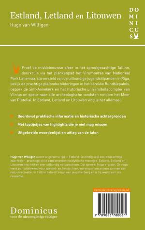 Ontdek de Baltische staten Estland, Letland en Litouwen op vakantie met deze Dominicus-reisgids en verken Tallinn, Saaremaa, Riga, Vilnius, de nationale parken en meer. Proef de middeleeuwse sfeer in het sprookjesachtige Tallinn, doorkruis via het plankenpad het Virumoeras van nationaal park Lahemaa en sta versteld van de bezienswaardigheden en uitbundige jugendstilpanden in Riga. Bekijk ook de prachtige plafondschilderingen in het barokke Rundalepaleis, bezoek de Sint-Annekerk en het historische universiteitscomplex van Vilnius en speur naar alle archeologische vondsten rondom het Meer van Plateliai. Beleef de ultieme vakantie In Estland, Letland en Litouwen. Deze reisgids zit bomvol praktische informatie, handige overzichtskaarten, sfeervolle foto's, historische achtergronden en uitgebreide culturele achtergrondinformatie. Bovendien zijn Dominicus-reisgidsen altijd up-to-date en geschreven door Nederlandstalige experts. Hugo van Willigen woont al geruime tijd in Estland. In Tallinn beheert hij een jeugdherberg en is hij werkzaam als reisleider.