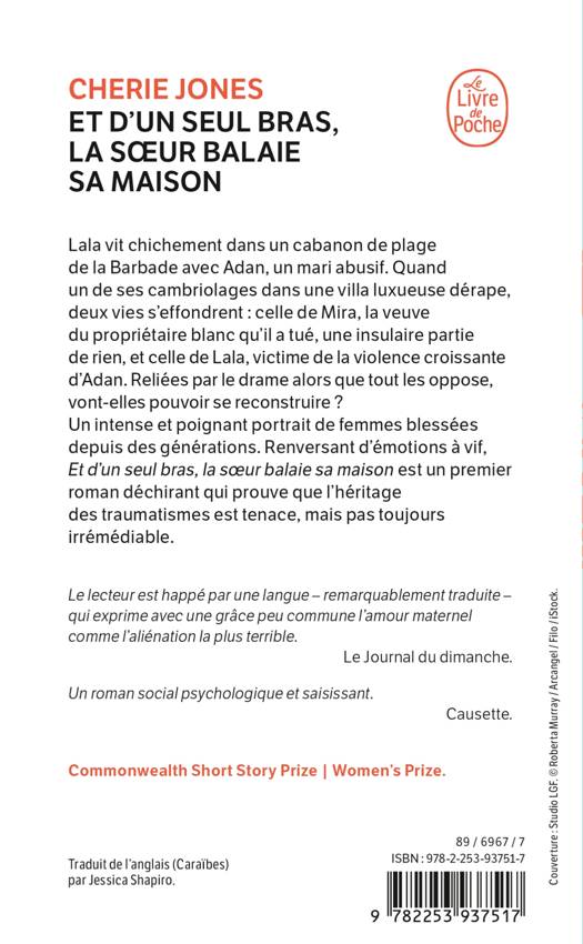 Lala vit chichement dans un cabanon de plage de la Barbade avec Adan, un mari abusif. Quand un de ses cambriolages dans une villa luxueuse dérape, deux vies de femmes s’effondrent : celle de la veuve du propriétaire blanc qu’il a tué, une insulaire partie de rien, et celle de Lala, victime de la violence croissante d’Adan. Comment ces deux femmes que tout oppose, mais que le drame relie, vont-elles pouvoir se reconstruire ? Un intense et poignant portrait de femmes blessées depuis des générations. Renversant d’émotions à vif, Et d’un seul bras, la sœur balaie sa maison est un premier roman déchirant qui prouve que l’héritage des traumatismes est tenace, mais pas toujours irrémédiable.